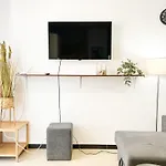 I den här lägenheten har gästerna tillgång till vardagsrum och ett komplett kök, tillsammans med luftkonditionering.